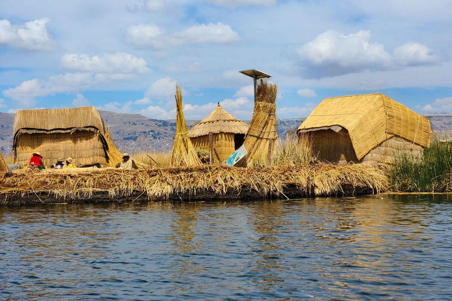Afhentning på hotellet til en hurtig bådudflugt på Titicacasøen, den højest beliggende sejlbare sø i verden (3.812 m). Besøg de flydende Uros-øer, og oplev de lokales unikke teknikker til at bygge deres sivøer. Valgfri tur på en traditionel totora-båd. Fortsæt til Taquile-øen, der er kendt for sine dygtige vævere og bevarede inka-traditioner. Nyd en lokal frokost med spektakulær udsigt over søen og Andesbjergene, før du vender tilbage til Puno om eftermiddagen.