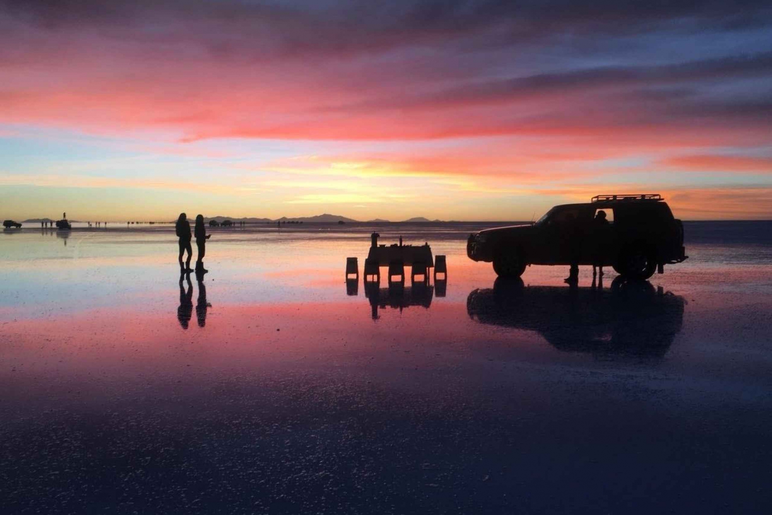 Herefter går turen tilbage til Uyuni, hvor du undervejs kan observere områdets andinske planter og dyr, inden du ankommer til Uyuni kl. 17.00. Efter en kort pause bliver du kørt til din bus, som kører dig tilbage til La Paz.