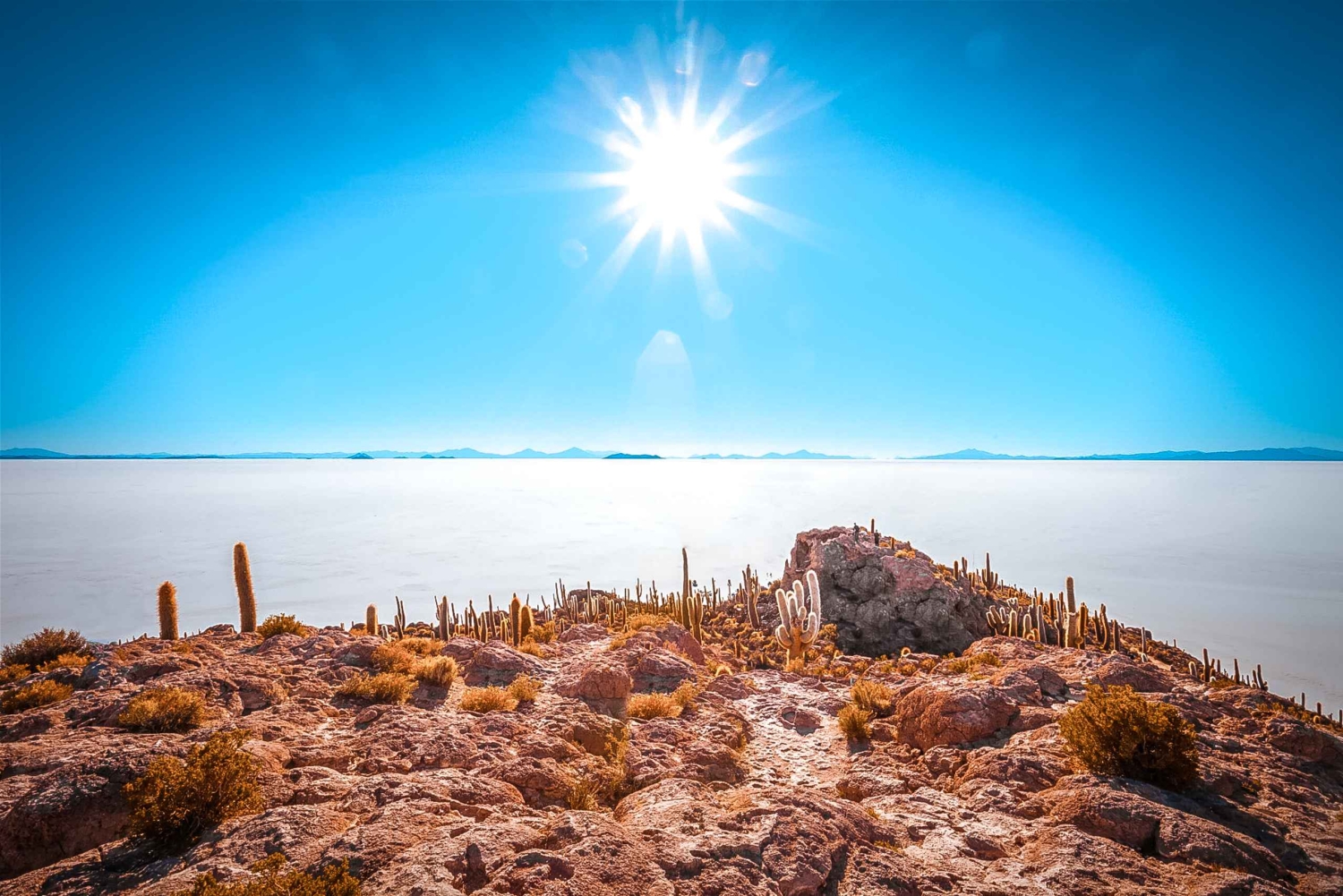 Die Insel Incahuasi liegt inmitten der Salinen und ist wie eine Oase mit einem exklusiven und isolierten Ökosystem, das von 1 bis 4 Meter hohen Kakteen bewohnt wird. Die Incahuasi-Insel gilt als exzellenter Spot für Fotografen und als Ort zum Ausruhen mit der beeindruckenden Landschaft der majestätischen Uyuni-Salzwüste.