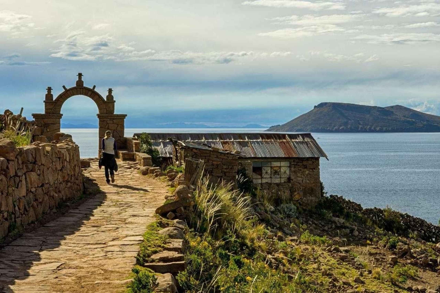 Dieser Besuch beinhaltet eine Wanderung zu den höchsten Punkten der Insel, wo sich die Tempel (Pacha Tata und Pacha Mama) befinden, von wo aus man von einem großen Observatorium aus die Schönheit der Insel genießen und die Unermesslichkeit des Titicacasees mit einem einzigartigen Sonnenuntergang sehen kann, sowie die Unterbringung in einfachen und komfortablen Familienhäusern.