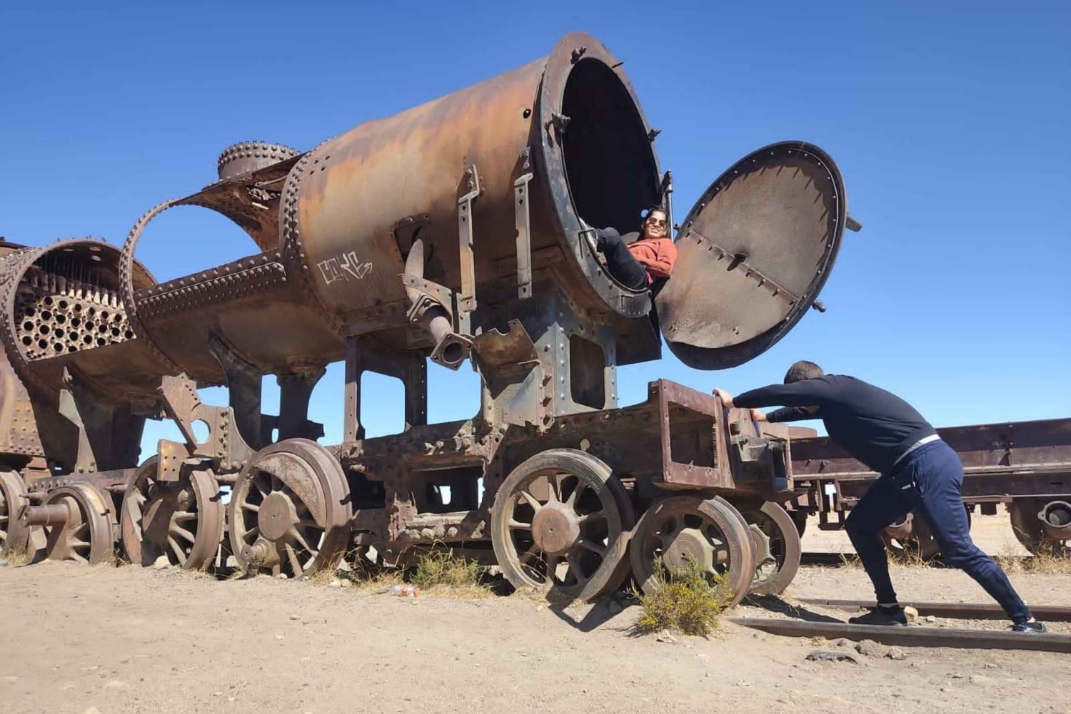 En coche 4x4, te recogerán en tu hotel, visita el antiguo cementerio de trenes, el pueblo de Colchani, observa las plantas procesadoras de sal, las tiendas de artesanía, disfruta de un almuerzo local y camina por el desierto de sal.