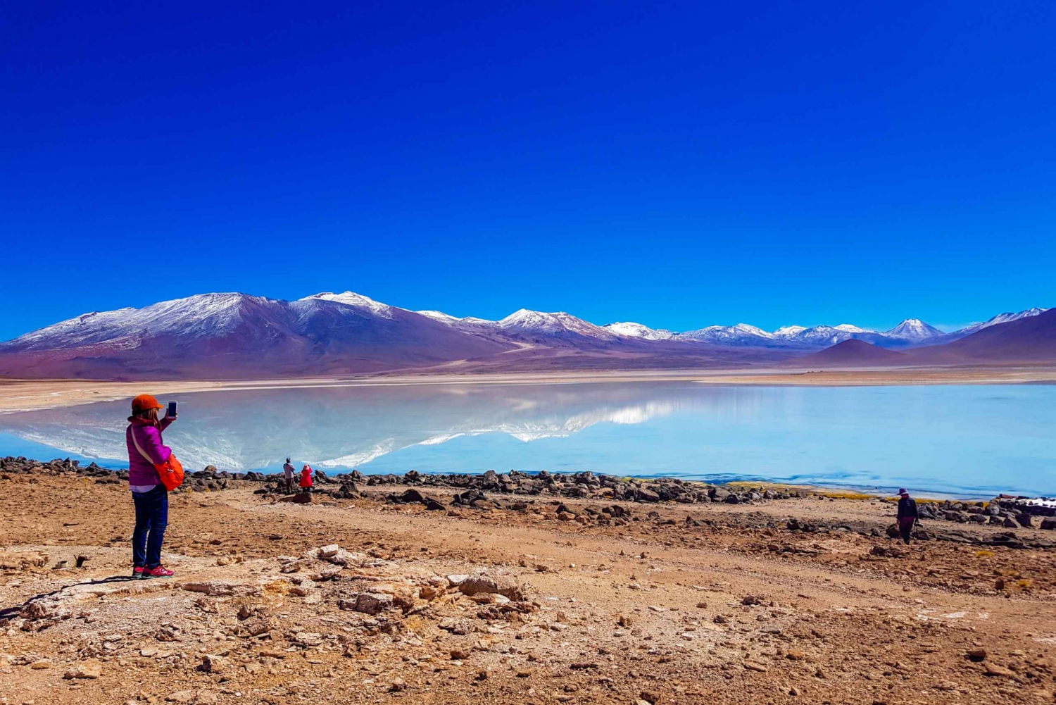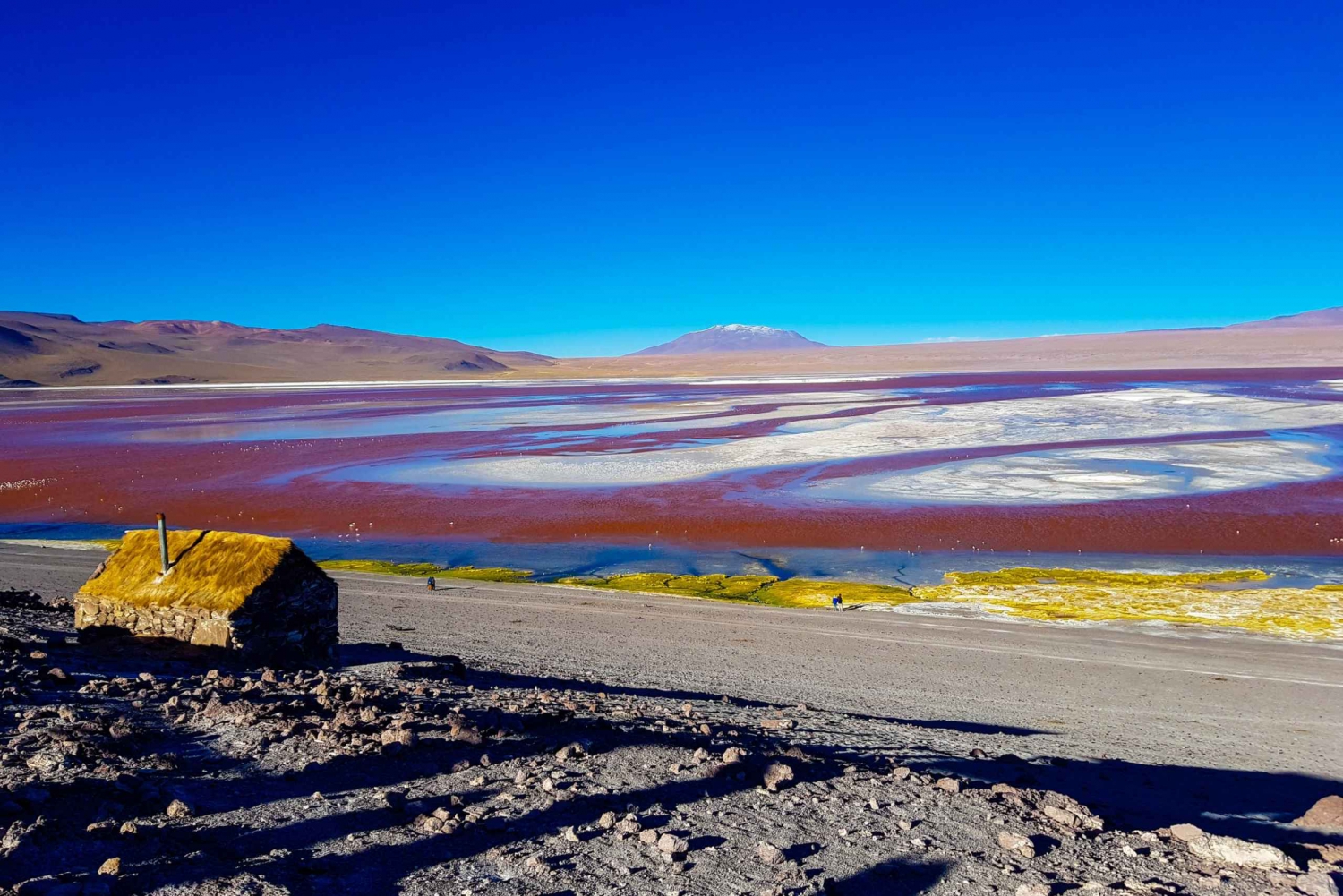 Get off to an early start around 5:00 a.m. to visit: Sol de Mañana Geyser, Hot Springs, Dali Desert, Green Lagoon, White Lagoon on the foot of Licancabur volcano.