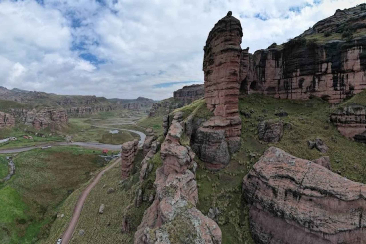 The tour culminates in the impressive Tinajani Canyon, a little-explored natural gem. Its gigantic rock formations, carved by millions of years of wind, rain, and snow, rise like stone guardians in a landscape that conveys peace and grandeur. Its reddish hues and the energy that permeates this place provide a unique experience.