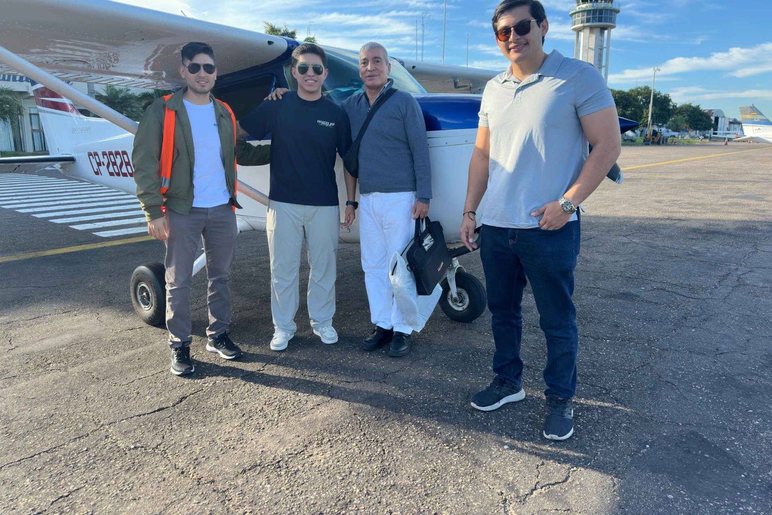 Begin with a warm welcome at the private airport, where you'll receive a brief safety briefing and flight route information. Then, board a private jet with the pilot who will guide you throughout your journey. Enjoy the comfort of a small aircraft, accommodating one to three passengers, as you soar above the city. Marvel at the stunning landscapes of the Sand Dunes, the unique formations of the City of Rings, and the majestic beauty of Amboró National Park. This unforgettable aerial journey offers breathtaking views and an incredible feeling of flight. Enjoy a unique perspective of Santa Cruz’s natural wonders and vibrant landscapes.Includes