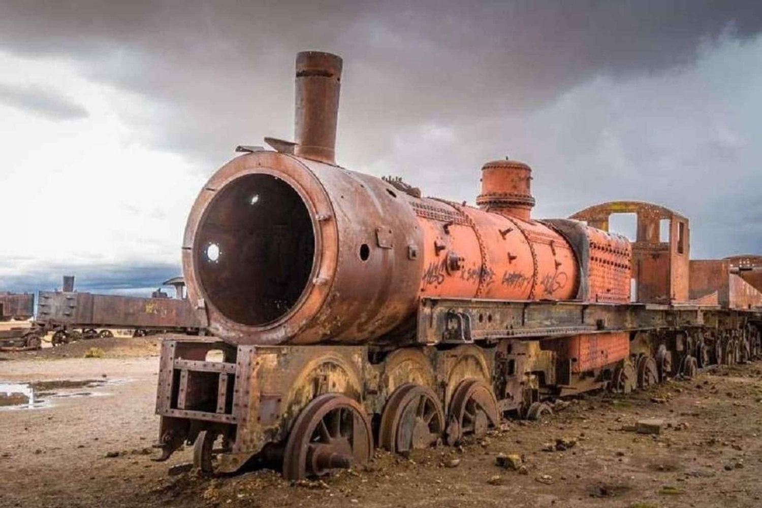 First we start with the pick up from the hotel in Uyuni, then we will go to the train cemetery to see the old locomotives.