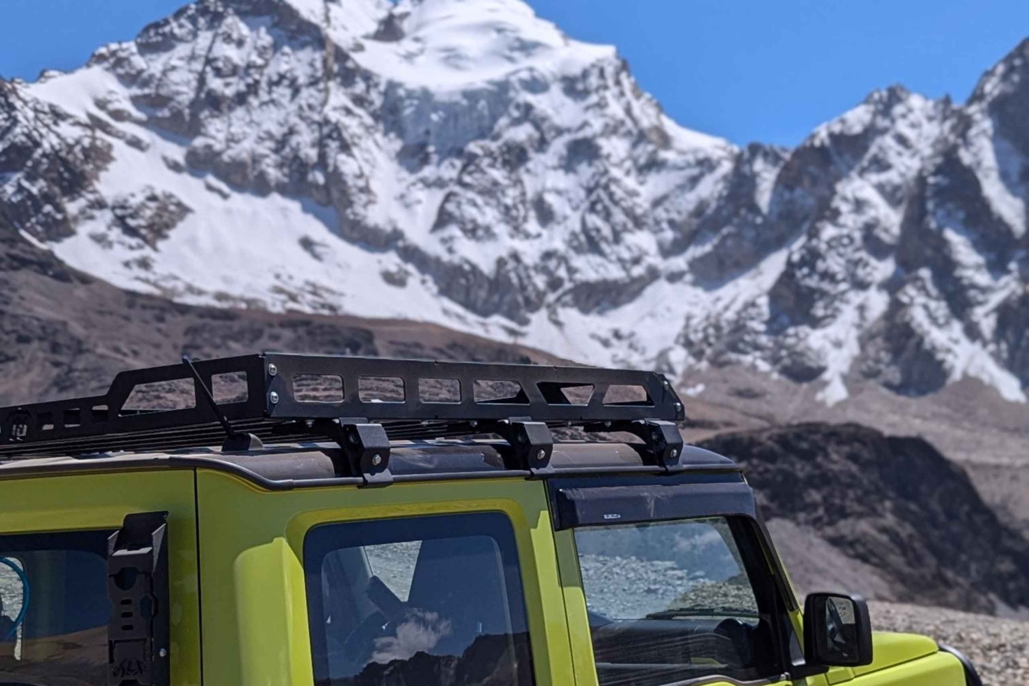 Kaksinkertainen seikkailu La Pazin lähellä! Vuoristosta pitäville. Optimoi päiväsi! Ole ensimmäisenä Charquinissa ja pääse yksinoikeudella Huayna Potosín (länsipuoli) salaisiin laguuneihin.