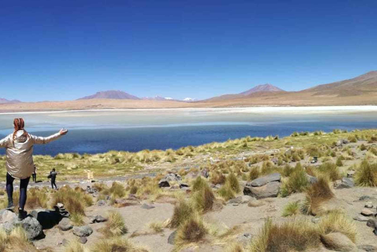 Nautittuasi herkullisen aamiaisen oppaasi ohjaa sinut lounaaseen, jossa tutustut Cañapan, Haisun, Chiarkotan, Hondan ja Ramaditan laguuneihin. Näissä paikoissa voit tarkkailla suuria määriä flamingoja ja muita lintuja, kuten Andien hanhia ja lokkeja, jotka seuraavat flamingojen mukana näissä laguuneissa, joita reunustavat viehättävät lumiset tulivuoret.