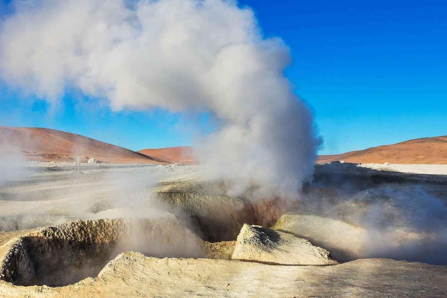 Questa giornata inizierà con il servizio di prelievo in hotel a San Pedro de Atacama per raggiungere il confine tra Cile e Bolivia. Dopo aver espletato le relative formalità, cambieremo veicolo.