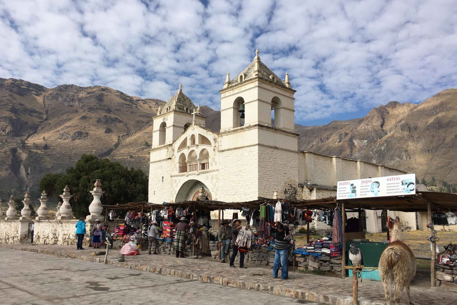08:30 - Iniziamo il nostro viaggio verso uno dei canyon più profondi e più belli del mondo. Il viaggio dura circa 4 ore per raggiungere la città principale di Chivay, con soste turistiche lungo il percorso. Attraverseremo la Riserva Nazionale di Salinas e Aguada Blanca, dove potremo apprezzare le vigogne, il principale camelide che vive nella zona, dopodiché visiteremo Patahuasi, molto vicino, per bere il tradizionale tè di coca, una bevanda tradizionale essenziale per il mal di montagna. (mal di montagna). Più tardi faremo una piccola sosta alla Toccra Bofedales dove potremo osservare un gran numero di alpaca che pascolano liberamente nella zona. Una sosta obbligatoria al Mirador de los Volcanes, il punto più alto del percorso che raggiunge i 4800 metri sul livello del mare, da dove potremo apprezzare gran parte della catena montuosa occidentale; da questo punto inizieremo la discesa verso la città di Chivay, arrivando in circa 40 minuti.
