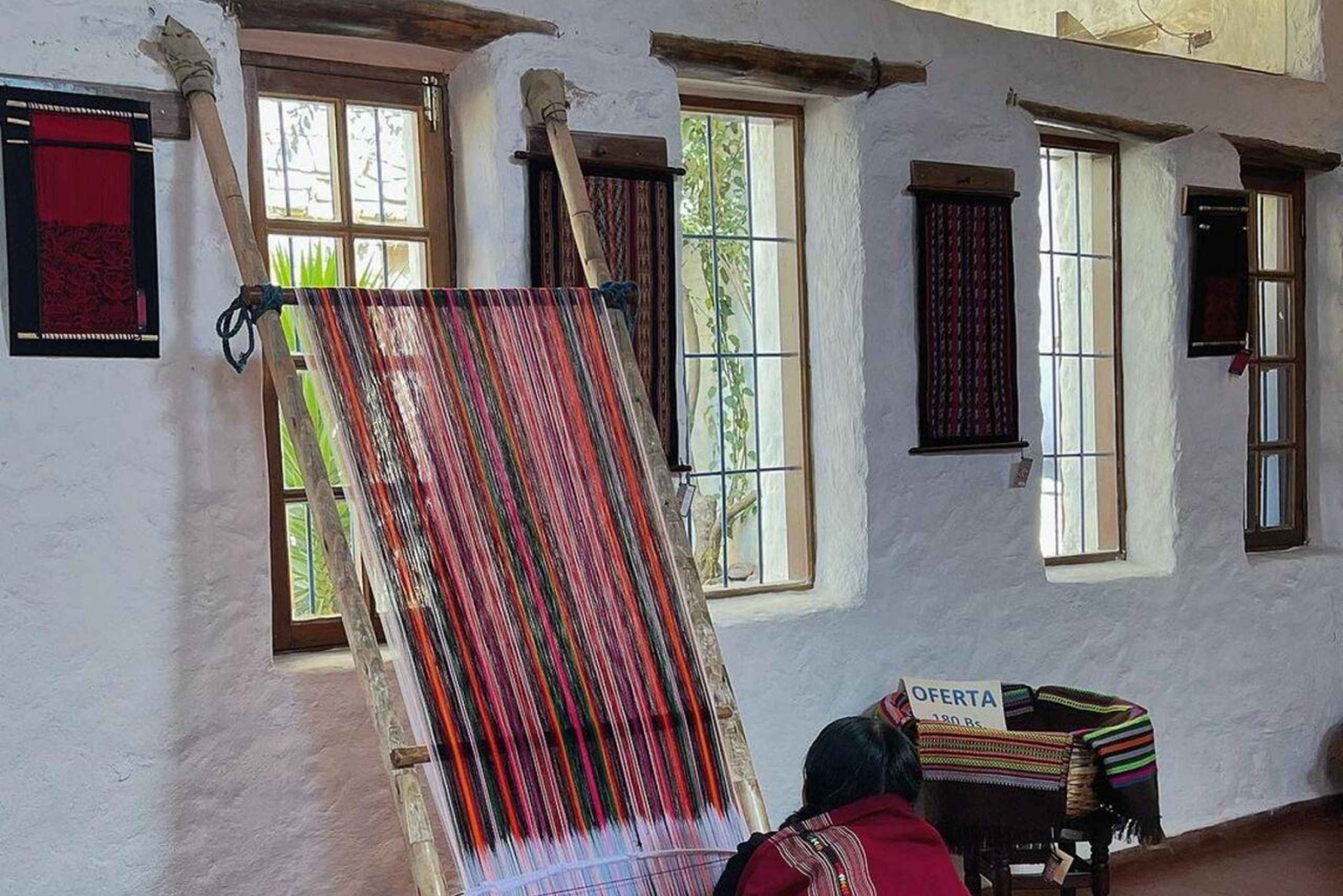 Bezoek vervolgens het ASUR Indigenous Art Museum, gevestigd in een prachtig bewaard gebleven gebouw. Het museum toont een indrukwekkende collectie inheemse textiel en kleding uit de prekoloniale, koloniale en republikeinse periode. Daarnaast heeft het museum een galerie waar traditionele wevers hun vak demonstreren, zodat je uit de eerste hand getuige kunt zijn van de ingewikkelde technieken en ontwerpen die generaties lang zijn doorgegeven. Dit bezoek biedt een diepe duik in het rijke culturele erfgoed van Sucre en de omliggende regio's.