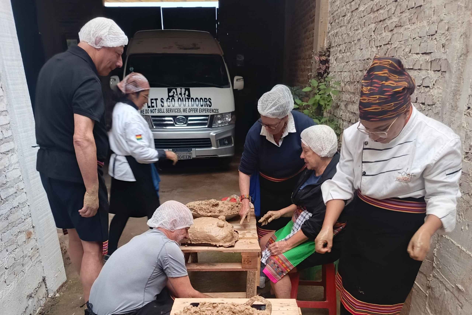 Vi inviterer deg til å delta på våre fascinerende kurs i tradisjonell matlaging, hvor du lærer å tilberede oppskrifter som har gått i arv fra generasjon til generasjon, med lokale ingredienser og tradisjonelle teknikker, ledsaget av tropiske salater, cocktailer med boliviansk singani (brennvin), musikk, dans og smaking av peanøttsuppe, en original oppskrift fra huset. På kursene våre kan du:
