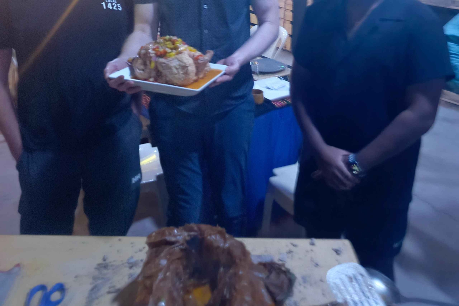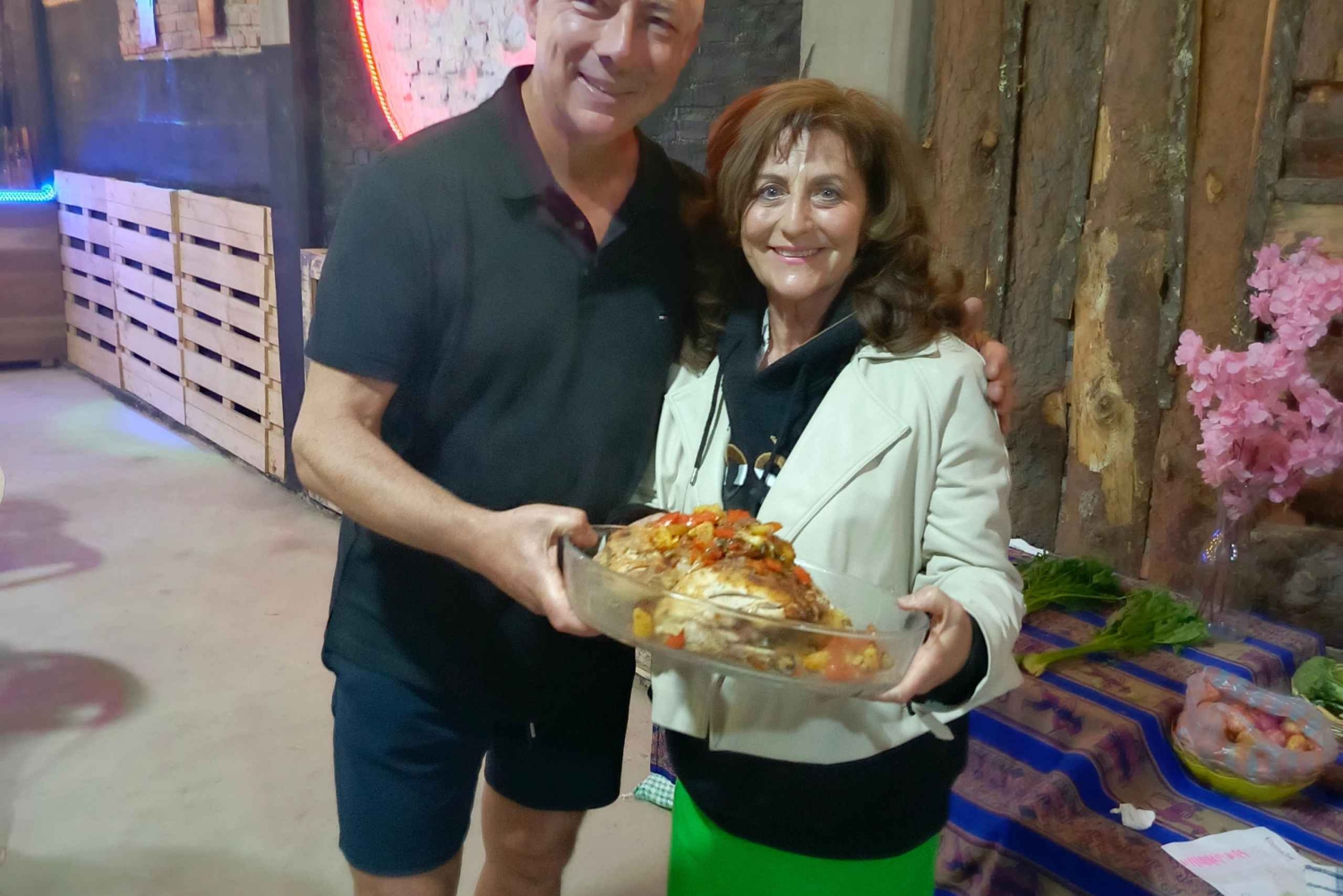 INKLUDERT Privat transport tur/retur Penger til kjøp av kylling, grønnsaker, frukt og urter på markedet i MORRO Smaking av verdens beste peanøttsuppe Tilberedning av kylling i leire Tilberedning av tilbehør Tilberedning av Chuflay og mojitos Kjøkkenutstyr (skjærebrett, kniver, bestikk, brett osv.)