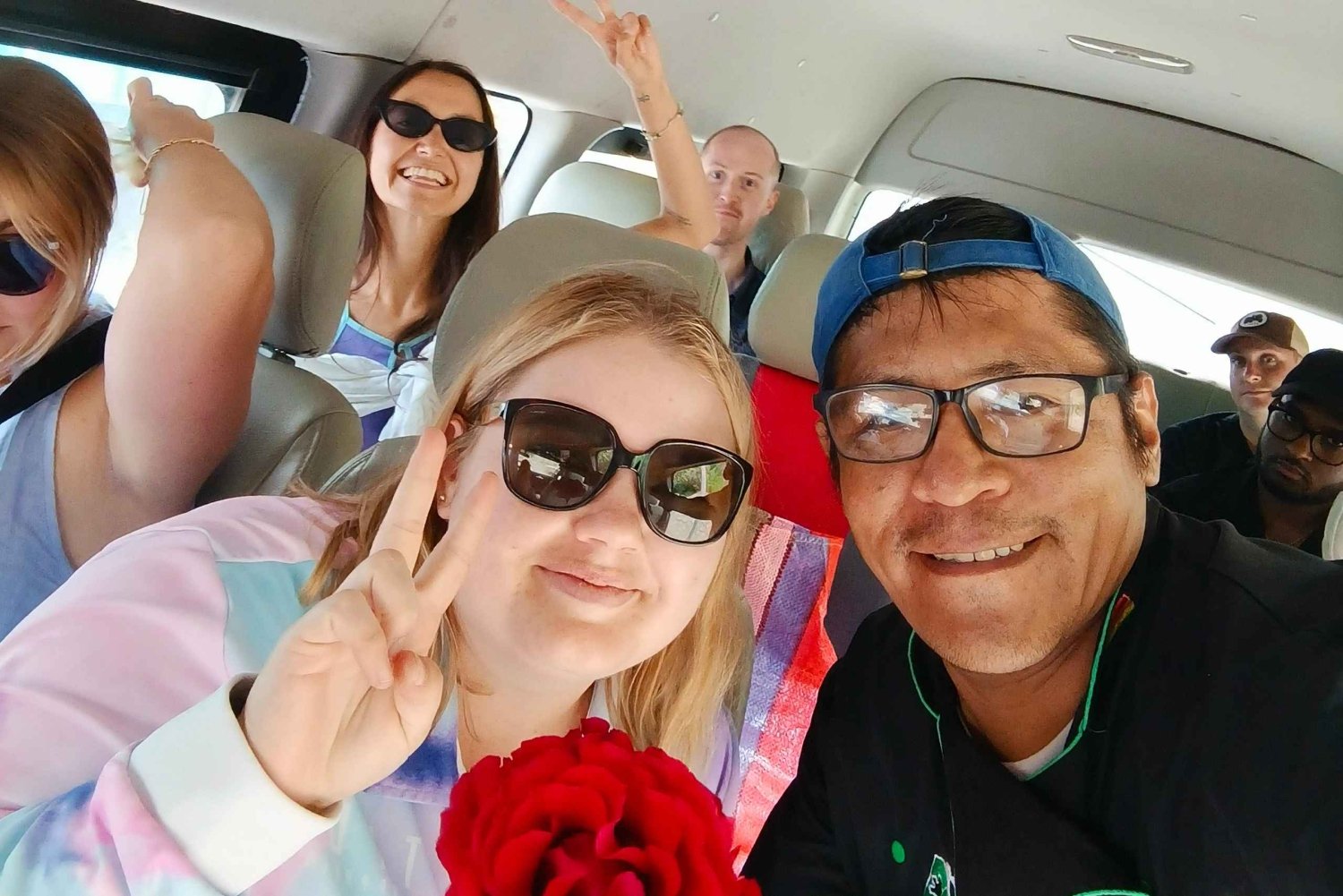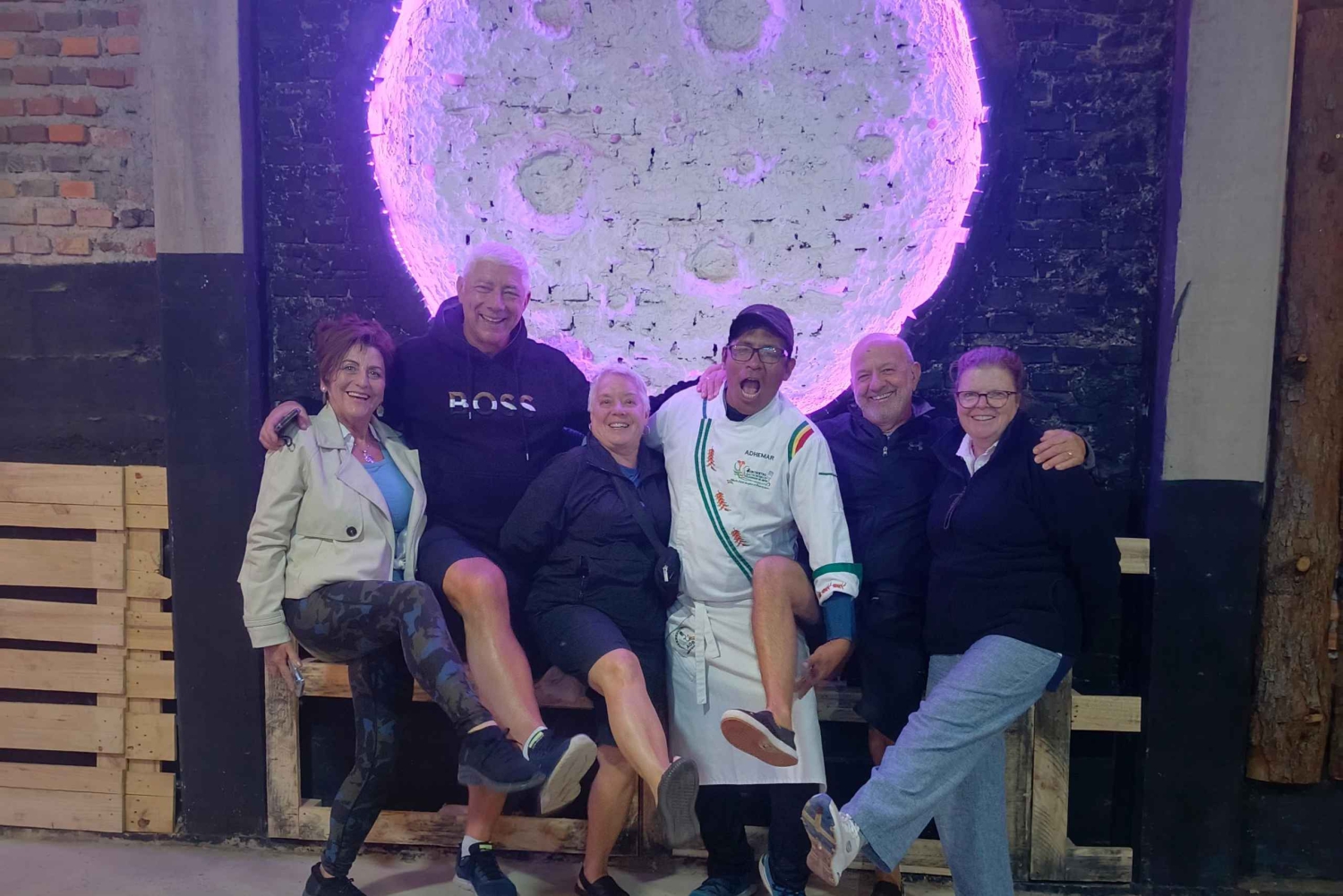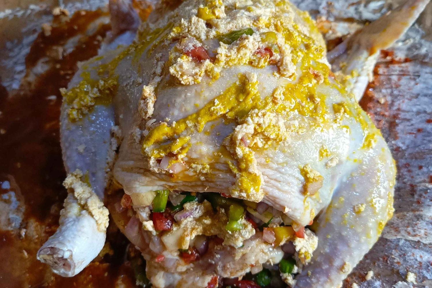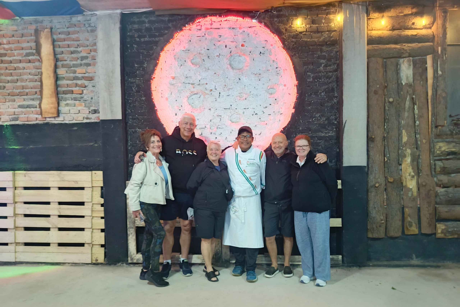 For å avslutte turen tar vi kyllingen ut av ovnen etter 2 timers steking, for å åpne og kjenne en eksplosjon av smaker som vil begeistre smaksløkene dine, ledsaget av brød ristet på glødende kull, salater og mojitos. Som ekstra har vi vann og mate å tilby deg.