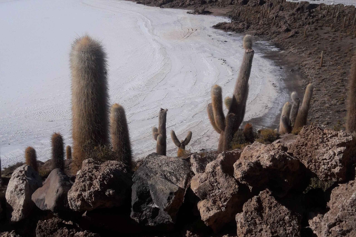 Eventyret fortsetter med et besøk på Incahuasi-øya, som ligger midt i Salar de Uyuni, der du kan beundre de gigantiske kaktusene og de forsteinede korallene. Etter en kort spasertur til toppen av denne øya har du 360 graders utsikt over hele Sal-ørkenen. Nyt Ojos de Sal og solnedgangen ved Salinas de Uyuni. Deretter overnatter dere i en luksuriøs bobil og nyter en deilig middag. Om natten vil du ha en spektakulær utsikt over Melkeveien fra midten av Salar de Uyuni.
