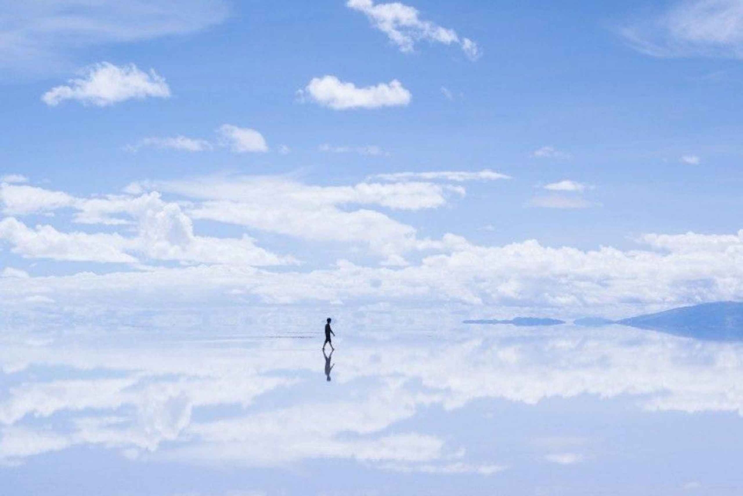 Spotkaj się z przewodnikiem w Uyuni i rozpocznij swoją 3-dniową przygodę. Odwiedź cmentarz pociągów, zwiedź małą osadę Colchani, aby poznać solne rzemiosło i tekstylia, a także zobacz hotel i muzeum w całości wykonane z soli. Umieść flagę swojego kraju na World Flags i odwiedź pomnik Rajdu Dakar. Za dodatkową opłatą odwiedź wyspę Incahuasi.