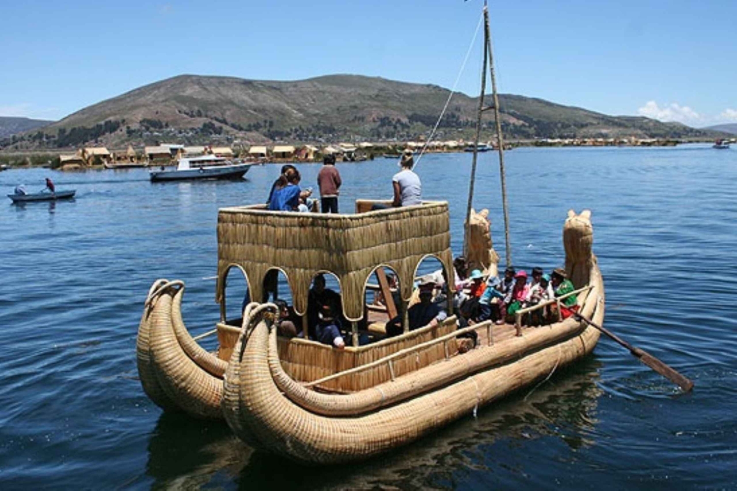 Rozpocznij dzień od odbioru z hotelu i transportu do portu w Puno. Wskocz na pokład łodzi i podziwiaj góry i miasteczka wzdłuż brzegów jeziora Titicaca podczas rejsu na wyspę Uros.