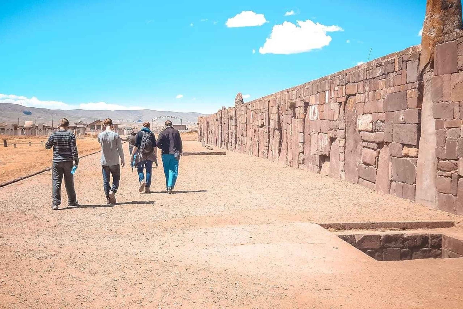 Efter museet besöker du de arkeologiska ruinerna, inklusive Puerta del Sol (Solens port), Puerta de la Luna (Månens port), Kalasasaya-templet, Akapana-pyramiden och ruinerna av Pumapunku.