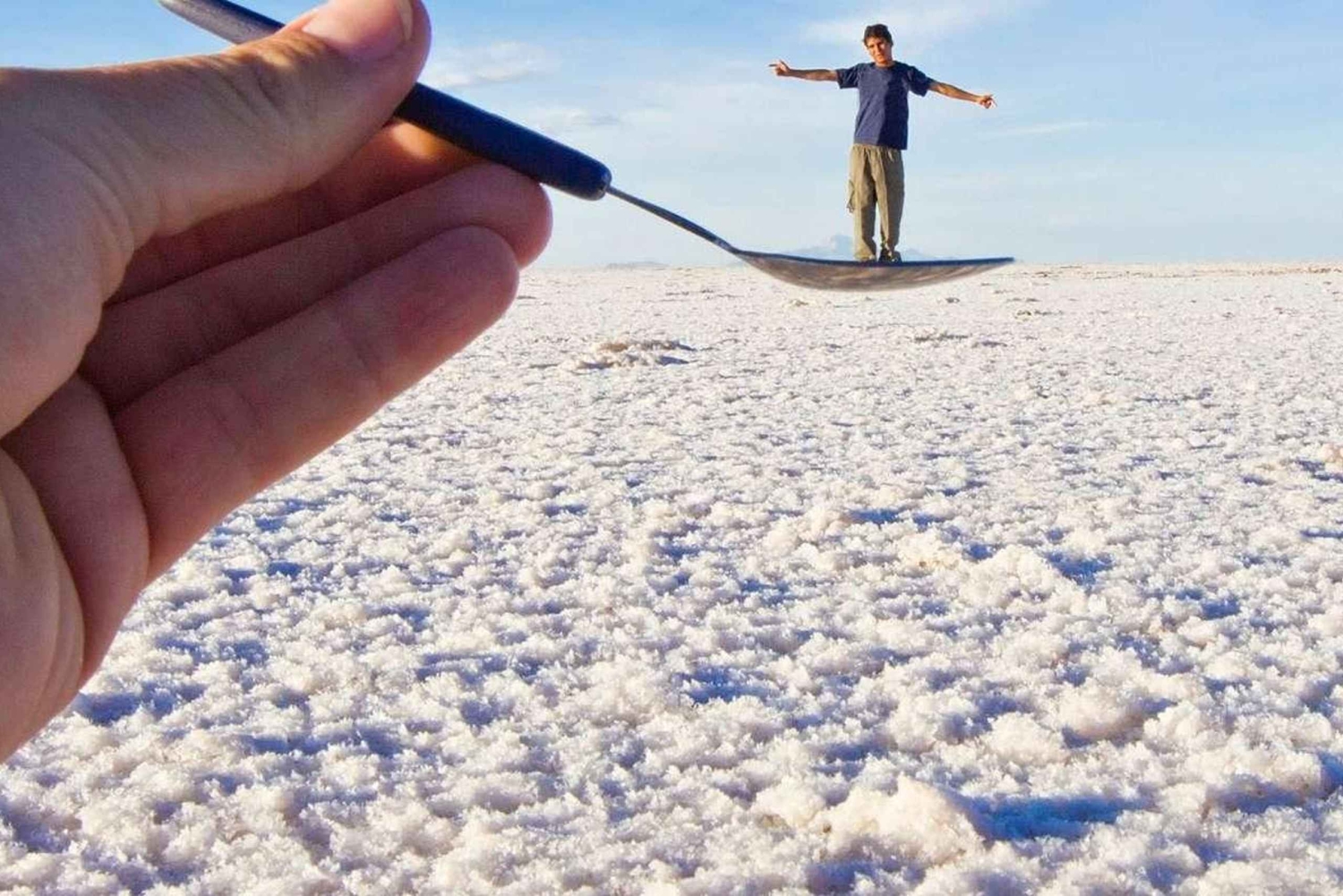 Den första dagen börjar vi med upphämtning från terminalen eller flygplatsen och transfer till hotellet i saltslätten, på morgonen och en del av eftermiddagen fri, sedan upphämtning från hotellet för att starta Sunset and Star Night-turen i Uyuni Salt Flats.